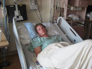 Simon went to Ann Arbor this last week end to visit his friend from Norway that is an exchange student there. His friends Americanized name is also Simon. Well, they went to the Michigan football game on Saturday and then came home for dinner. Around 8pm, Simon started to have abdominal pain but still went out and played pool and table tennis with Simon and his friend. At 1am Simon woke up with severe abdominal pain and vomiting After being that way for 2 hours he finally called me. He at first told me I could pick him up in the morning but after talking a little more he said that I could come then. I arrived in Ann Arbor about 4:30am and saw there was a light on in the living room so I went to the door and noticed Simon's host mom was on the couch and I didn't knock as she was getting up. Well, she opened the door and I said something to her and I scared her half to death. She hadn't seen me she was just letting the cat out as the cat had woke up. Simon had never talked with her and she didn't know I was coming. I went upstairs to get Simon but he was in the bathroom, poor kid. I got his stuff and when he was up to it, we left. On the way home I was debating if he had a bug or what. But Simon was in the hospital in March with the same abdominal pain and vomiting and they couldn't find anything wrong and then told him that if it happened again that he should go to the hospital. So, I debated in my head what to do, home, Hurley or Mott Children's in Ann Arbor. I decided against home so now, Hurley or Mott Children's. I would feel more comfortable at Hurley and it's closer to home but I don't really like the pediatric surgeon at Hurley and if there is something that is hard to find, what better place to go than Mott, one of the best hospitals in the whole country. So, back to Ann Arbor we go (I was only about 10 minutes away.) After I finally found the ER I pulled in and they had free valet parking and someone from security was right there also. Simon wasn't walking very well and security got Simon a wheel chair and insisted on pushing it himself. We were triaged right away and sent to the peds er. Once we got there, they offered to put Simon right in a semi private room with a 2 year old or we could wait 5 minutes for another bed to empty, and that's what happened. When they asked Simon how much pain he was in on a 1-10 scale with 10 being the worst, he said 9. I was very surprised because he never complained at how much pain he was in and he just lies there. He is one tough cookie. Since he was having abdominal pain they had to put in an IV and give him fluids and drew some lab work. When the tech was going to start the IV he was doing in the part where all the hair is and I couldn't believe it. I almost said something but I figured that isn't the best thing to do just before he poked him. I didn't want to make him nervous and not hit the vein. Well, he didn't get the vein and had to poke Simon again but at least away from the hair in his arm. His lab work came back and his white count was elevated (13) so they wanted to do a cat scan to rule out appendicitis. Simon was suppose to drink one cup of contrast and then in an hour drink another. Poor Simon as he had been vomiting for hours but the last time had been 3 hours ago so maybe it would work. He was able to get the first cup down, only saying something about the taste once. After he finished the cup he was nauseated and in a lot more pain. So, when the doctor came in, I asked if Simon couldn't have something for the nausea and he also apologized for not giving him something for pain yet. Before the next cup of contrast Simon got his nausea medication(Zofran) and some Morphine for the pain. The morphine was a super small does and the nurse pushed it very slow, over 4 minutes but it still gave Simon the weirdest feeling and a headache. That only lasted about 5 minutes and then he started to drink his 2nd cup of contrast. After drinking a small amount, Simon asked me for his bucket and then to remove his hoody that was on top of him and he was so non nonchalant about it I didn't worry too much. Simon then puked up all the contrast. After the nurse called radiology, they said for him just to drink a couple of sips and then take him for his CAT scan. After he returned, the ER resident said that his appendix was thickened and that they were calling surgery. It didn't take too long for the surgery resident to come in and he was talking with us and he got paged and left the room before he was done. While he was out they came in to wheel Simon to surgery and we didn't even know he was going then. Simon had a question to ask the doctor (if the surgery could wait until after soccer season which the answer was no) and we hadn't talked to Simon's parents yet as I wanted to have all the test results back and what they were going to do first. We got a hold of Simon's mom, Liv before they wheeled him out and off to pre op holding for surgery. They let me sit with him there but he wasn't there long and off to surgery he went. It was about 12 noon then but I thought it could have been only 8 as everything seemed to go fast. I was so sure the clock was wrong that when I called Floyd, I asked him the time and I was the one that was wrong. After surgery, the surgeon came out and talked with me and said that everything went well and he had acute appendicitis. I guess that Simon's appendix was pointed downward and that is why he didn't have the typical abdominal pain for appendicitis and had they done a rectal exam he would have had excruciating pain. I was finally able to see Simon again at 2pm when they were taking him back to his room. Once we got to his room we could hear his room mate yelling, moaning and crying and that never stopped the whole time we were there except for when he had his morphine and went to sleep. It made for a very long 24 hours. Of course Simon slept quite a while as he still had a lot of anesthesia in him so he wasn't able to he